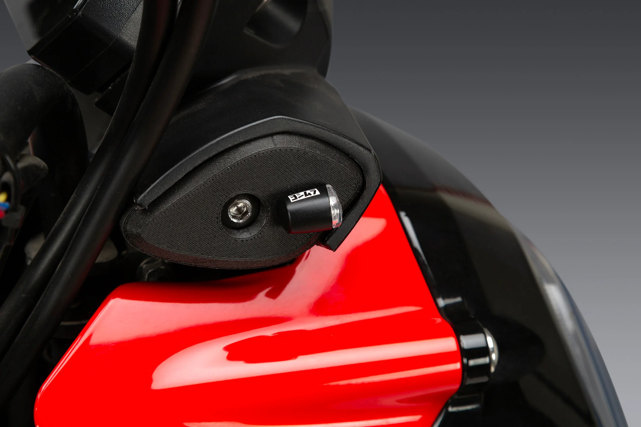 Our custom mounting plates are 3D printed with Onyx, nylon mixed with non-continuous carbon fiber offers high strength, excellent UV/heat resistance, and paintable. Not compatible with stock turn signals.