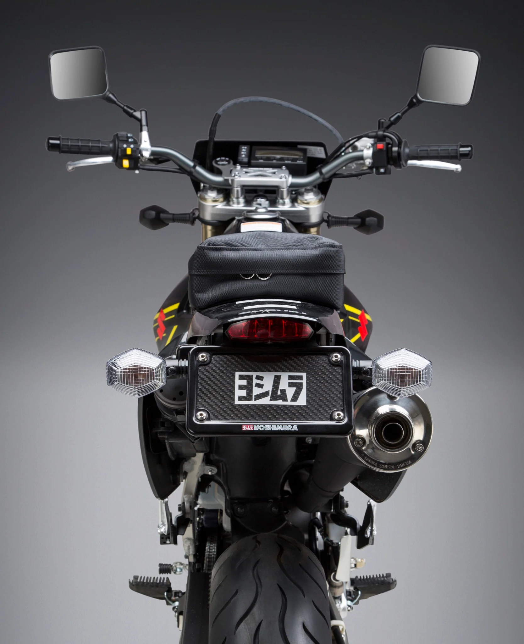 - Black anodized aluminum license plate frame with silk screened Yoshimura logo included